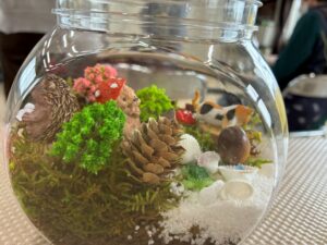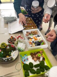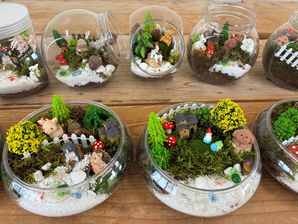 お知らせ ホーム > お知らせ一覧 > お知らせ > 10/25(土)「苔テラリウムづくり教室」を実施しました お知らせ 202510.28 10/25(土)「苔テラリウムづくり教室」を実施しました 動物やこびとのフィギュア、小石、貝殻などお気に入りを選び、どのように配置したらいいか楽しく考えながら、個性あふれる苔テラリウムを作り上げました。 まるで絵本の世界のような可愛らしい仕上がりになりました。 前の記事へ お知らせ一覧にもどる