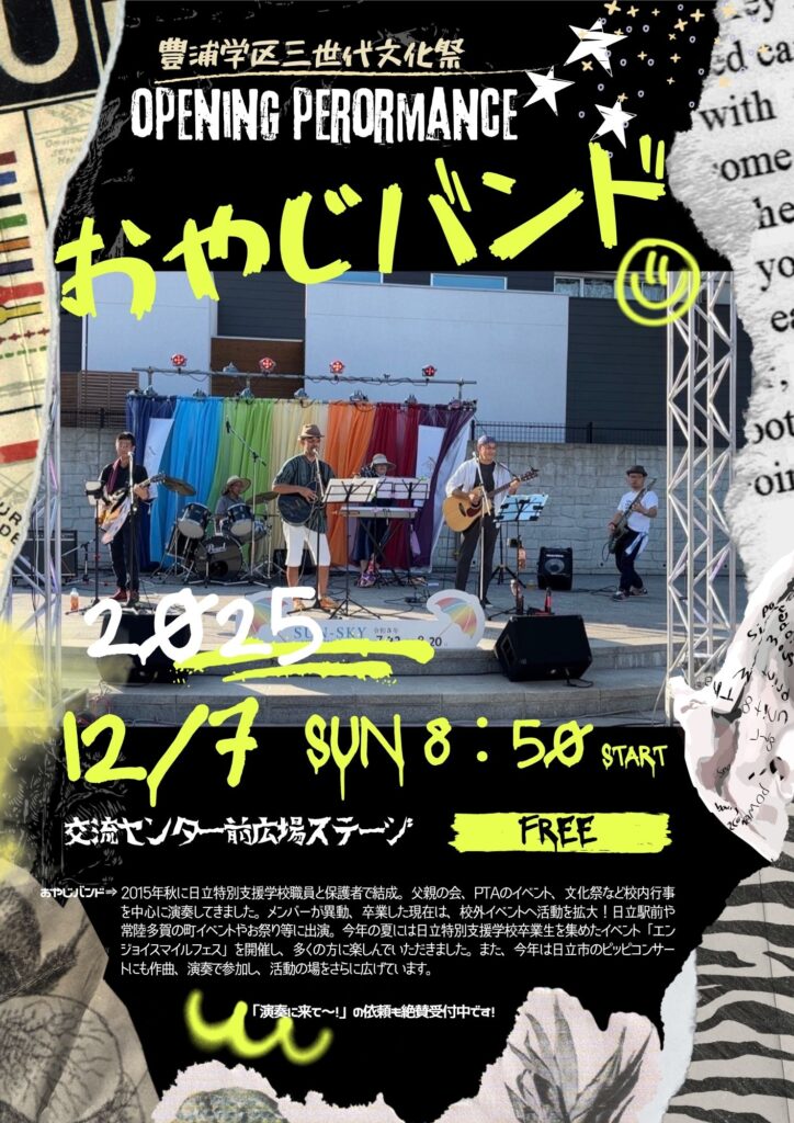 お知らせ ホーム > お知らせ一覧 > イベント・募集 > おやじバンド ~豊浦学区三世代文化祭~ イベント・募集 202511.07 おやじバンド ~豊浦学区三世代文化祭~ 豊浦学区三世代文化祭オープニングイベントとして、おやじバンドのスペシャルステージを開催します! ぜひお越し下さい! 前の記事へ イベント・募集一覧にもどる