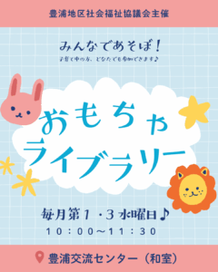 お知らせ ホーム > お知らせ一覧 > お知らせ > おもちゃライブラリー ~地区社協~ お知らせ 202511.05 おもちゃライブラリー ~地区社協~ 今日は、こんなに可愛いチビ忍者さんたちが遊びに来てくれました♪ 毎月第1・3水曜日 10:00~11:30 豊浦交流センター和室を会場に『おもちゃライブラリー』を開催しています。 お気軽にお越し下さい。 前の記事へ お知らせ一覧にもどる 次の記事へ