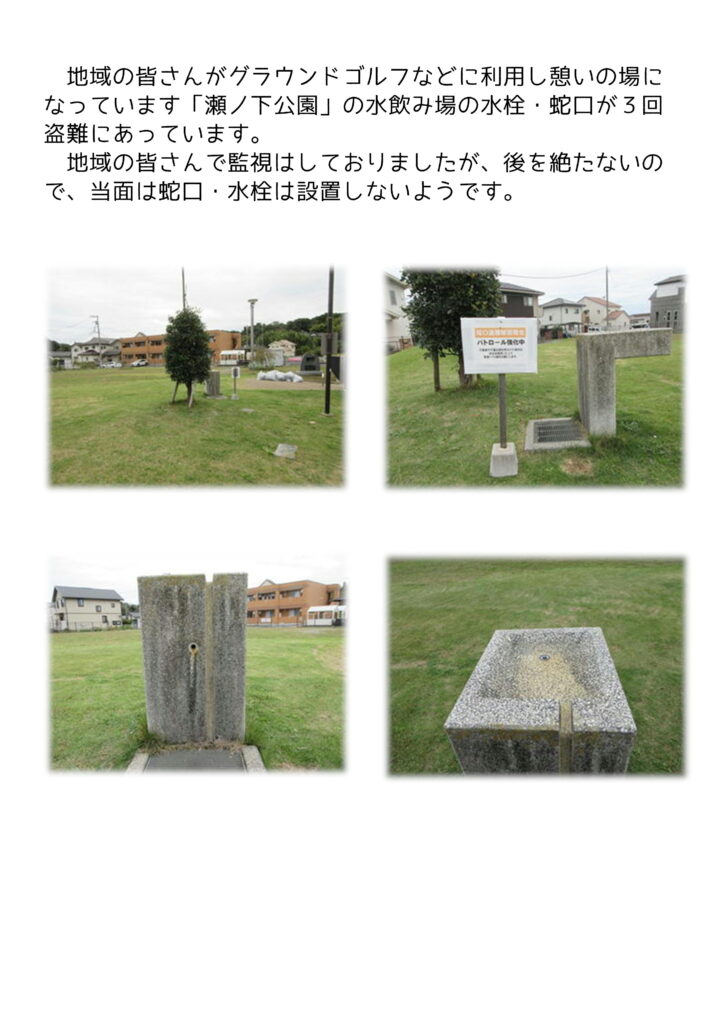 瀬ノ下公園 水飲み場の蛇口・水栓盗難