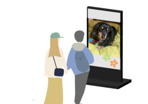 窓口設置のデジタルサイネージに、ご自身で撮影または描かれた、ペットや風景などのお気に入りの画像を大画面で掲示します。